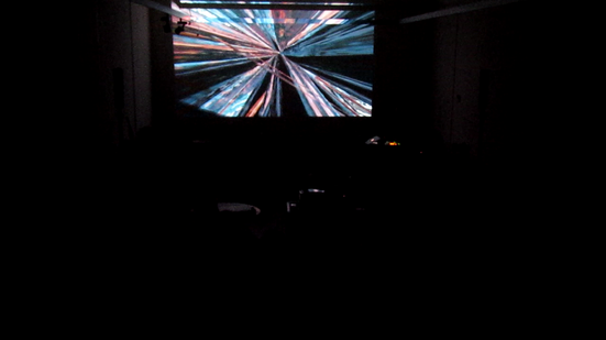 The theory of the perennial earthquake is a intermedia performance (which defines "a minimal and aleatory module of the total work") by Lino Strangis, musician, performer and medial artist of international fame. "A live audiovisual experience in which the phenomena of electronic sound sculpture go extemporaneously to meet an interactive video-scenography / setting, it too 'played / navigated, like a musical instrument for the eyes', manually by the same digital artist who proposes a futuristic version of the figure of the puppetist "(explains Veronica D'Auria, chief curator of CARMA)